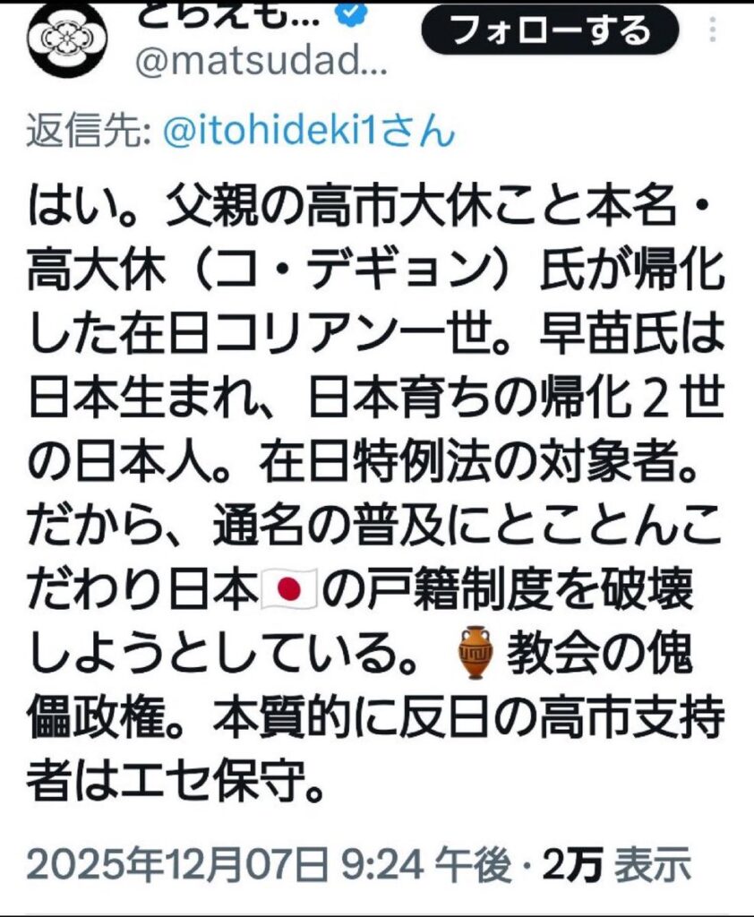 https://twitter.com/key_197617/status/2025379397268897802?s=46&t=54NEFlaJSvpv5lsrV1wp0Q 高市早苗氏の父親は高市大休(たかいち だいきゅう)という方で、享年...