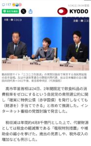 自民党は「責任ある積極財政」を掲げますが、これはただの選挙スローガン。連立合意で「検討」と曖昧にしていたものを、解散直前に急ごしらえで公約化した感が否めません。国民を舐めているとしか思えません。