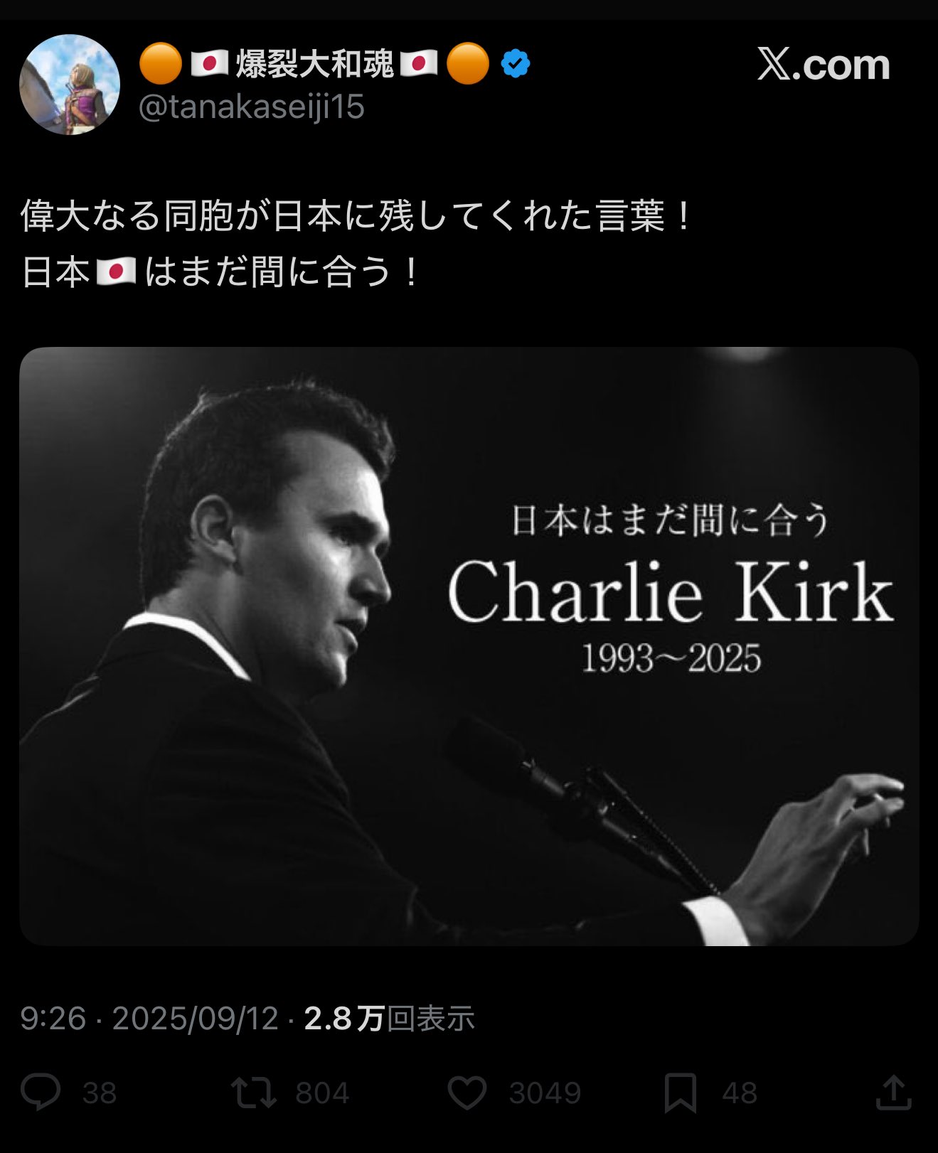 【超貴重映像】事件数日前に日本で残したチャーリーカーク最後の言葉👍👍👍 pic.twitter.com/4qIqUOlNw3